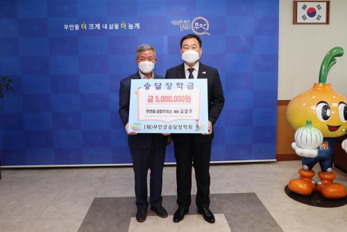 ¹«¾ÈÀ¾ ±è¿µÁÖ ´ëÇ¥, ¹«¾È±º ½Â´ÞÀåÇÐ±Ý 500¸¸¿ø ±âŹ