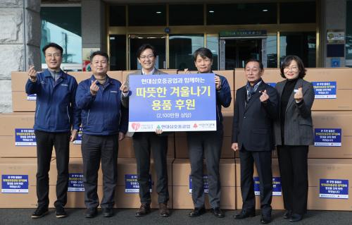 Çö´ë»ïÈ£Áß°ø¾÷ ÇÑÁ¤µ¿ ºÎ»çÀåÀº ¡°Àü´ÞµÈ ¹°Ç°µéÀÌ ¿ì¸® ÁÖÀ§ÀÇ ¾î·Á¿î ÀÌ¿ôµé¿¡°Ô ¿ä±äÇÏ°Ô ¾²À̱⸦ ¹Ù¶õ´Ù¡±¸ç µû¶æÇÑ °Ü¿ï³ª±â¸¦ À§ÇØ ÀÚ¹ßÀûÀ¸·Î ³ª¼ÁØ Á÷¿øµé¿¡°Ô °í¸¶¿òÀ» Ç¥Çß°í, ¿ì½ÂÈñ ¿µ¾Ï±º¼ö´Â ²ÙÁØÈ÷ ³ª´®À» ½ÇõÇϸç Áö¿ª»çȸÀÇ ¸ð¹üÀÌ µÇ°í ÀÖ´Â Çö´ë»ïÈ£Áß°ø¾÷°ú Çö´ëÁß°ø¾÷±×·ìÀÏÆÛ¼¾Æ®³ª´®Àç´Ü¿¡ Ưº°ÇÑ °¨»ç¸¦ ÀüÇß´Ù.