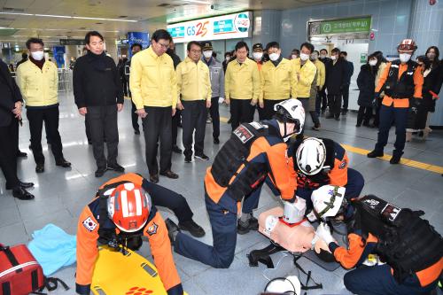 ƯÈ÷ µµ½Ãöµµ ±¤¾È¸® ¿ª»ç¿¡¼´Â ¼ö¸¹Àº ÀÎÆÄ°¡ ¸ô·Á ¿ª»ç ³» ¾ÈÀü»ç°í°¡ ¹ß»ýÇÏ´Â »óȲÀ» °¡Á¤ÇØ ³²ºÎ¼Ò¹æ¼ ¼Ò¹æ±¸Á¶´ë, ÈÀçÁø¾Ð´ë°¡ Âü¿©ÇÏ´Â ÇöÀå ´ëÀÀÈÆ·ÃÀ» Á÷Á¢ È®ÀÎÇØ ¸¸ÀÏÀÇ À§±Þ»çÅ ¹ß»ý ½Ã ½Å¼ÓÇÏ°Ô ´ëóÇÒ ¼ö ÀÖµµ·Ï ¾ÈÀü ´ëÀÀ ü°è¸¦ ÁýÁß Á¡°ËÇÑ´Ù.