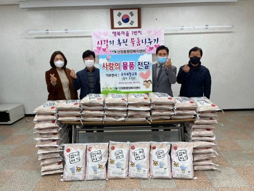 »êÁ¤µ¿¿¡¼´Â 10³â° ³ª´®À» ½ÇÃµÇØ¿À°í ÀÖ´Â ¿ì¸®¼¼Çⱳȸ(¸ñ»ç ¿À¼º¹®)°¡ ¹é¹Ì 50Æ÷, ¿¬Åº 200Àå, ³¹æÀ¯ 3°¡±¸¸¦ Áö¿øÇß´Ù.