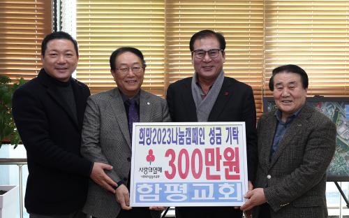 ÇÔÆò±ºÀº ¡°´ëÇÑ¿¹¼ö±³ Àå·Îȸ ÇÔÆò±³È¸(¸ñ»ç ±è¿îâ)¿¡¼ Áö³ 20ÀÏ ¡®Èñ¸Á2023³ª´®Ä·ÆäÀΡ¯ ÀÌ¿ôµ½±â ¼º±ÝÀ¸·Î 3¹é¸¸¿øÀ» ±âŹÇß´Ù¡±°í 21ÀÏ ¹àÇû´Ù.