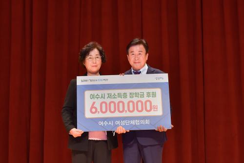 ´ÙÀ½À¸·Î´Â Áö¿ª ³» Àú¼Òµæ°¡Á¤ ÇлýµéÀ» À§ÇÑ 600¸¸¿øÀÇ ÀåÇÐ±Ý Àü´Þ½ÄÀÌ ¿·È´Ù. ÀåÇбÝÀº ȸ¿øµéÀÌ ½Ê½ÃÀÏ¹Ý ¸ðÀº ±âºÎ±Ý 350¸¸¿ø°ú ¿©¼º´Üü ³ó‧Ư»ê¹° ÆÇ¸Å ÃËÁø»ç¾÷ ¼öÀÍ±Ý 250¸¸¿øÀ¸·Î ¸¶·ÃµÆ´Ù.