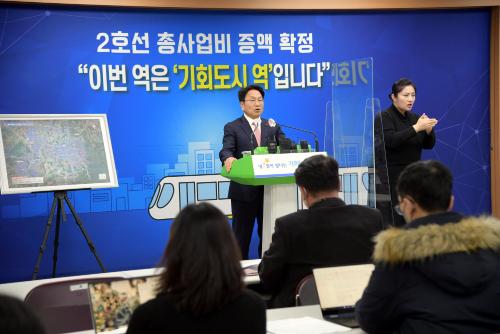 °±âÁ¤ ±¤ÁÖ±¤¿ª½ÃÀåÀº 29ÀÏ ¿ÀÈÄ ½Ãû ºê¸®Çη뿡¼ ±âÀÚȸ°ßÀ» ¿°í ¡°À̹ø ÃÑ»ç¾÷ºñ È®Á¤À¸·Î Áö¹æ ÃÖÃÊÀÇ ¼øÈ¯³ë¼± °Ç¼³ »ç¾÷ÀÎ µµ½Ãöµµ 2È£¼± »ç¾÷ÀÌ Á¤»ó ±Ëµµ¿¡¼ ÃßÁøÇÒ ¼ö ÀÖ°Ô µÆ´Ù¡±°í ¹àÇû´Ù.