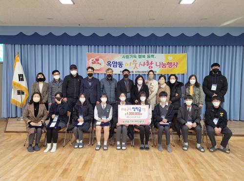 ¿Á¾Ïµ¿¿¡¼´Â ¿Á¾Ïµ¿Áö¿ª»çȸº¸ÀåÇùÀÇü(À§¿øÀå ±è¹ÎÈ£)°¡ Áö³ 27ÀÏ ¿Á¾Ïµ¿ÇàÁ¤º¹Áö¼¾ÅÍ¿¡¼ ¡®²Þµå¸² ÀåÇÐ±Ý Àü´Þ½Ä¡¯À» °®°í ÇÏ´çÁßÇб³(±³Àå ±èÇý°æ) Çлý¿¡°Ô ÀåÇÐÁõ¼¿Í ÀåÇбÝÀ» Àü´ÞÇÏ´Â ¶æ±íÀº ½Ã°£À» º¸³Â´Ù.