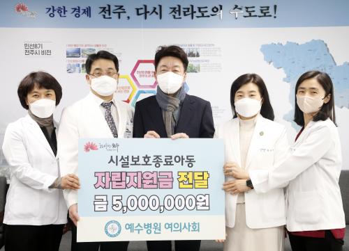 ¿¹¼öº´¿ø ¿©ÀÇ»çȸ(ȸÀå À¯Àº¾Ö)´Â 4ÀÏ ÀüÁֽø¦ ã¾Æ ½Ã¼³º¸È£Á¾·á¾Æµ¿À» À§ÇÑ ÀÚ¸³Áö¿ø±Ý 500¸¸ ¿øÀ» ±âŹÇß´Ù.