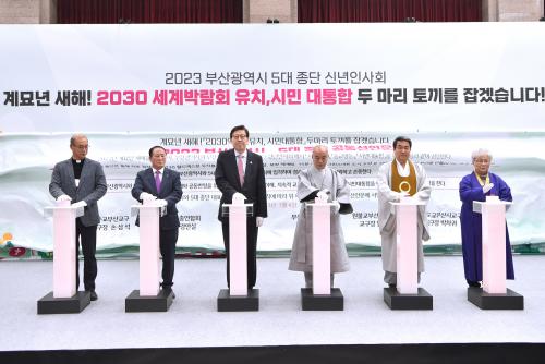 À̹ø Àλçȸ´Â °è¹¦³â Åä³¢ÀÇ ÇØ¸¦ ¸ÂÀÌÇÏ¿© ¡¸2030 ¼¼°è¹Ú¶÷ȸ À¯Ä¡, ½Ã¹Î ´ëÅëÇÕ µÎ ¸¶¸® Åä³¢¸¦ Àâ°Ú½À´Ï´Ù¡¹¶ó´Â ½½·Î°Ç ¾Æ·¡ 5´ë Á¾´Ü°ú ÇÔ²² ¼ÒÅëÇÏ°í ºÎ»êÀÇ ÈÇÕ°ú µµ¾àÀ» À§ÇÑ Èñ¸Á¸Þ½ÃÁö¸¦ ÀüÆÄÇϱâ À§ÇØ ¸¶·ÃµÆÀ¸¸ç, ¹ÚÇüÁØ ºÎ»ê½ÃÀåÀ» ºñ·ÔÇØ ºÒ±³¡¤±âµ¶±³¡¤ÃµÁÖ±³¡¤¿øºÒ±³¡¤Ãµµµ±³ 5´ë Á¾´Ü ´ëÇ¥¿Í ÁöµµÀÚµéÀÌ Âü¼®ÇÒ ¿¹Á¤ÀÌ´Ù.