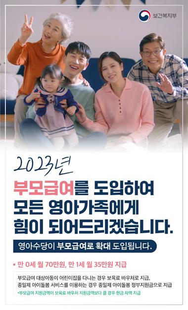 ºÎ¸ð±Þ¿©´Â 2023³âµµ Á¤ºÎ ½Å±Ô»ç¾÷À¸·Î 2022³â 1¿ù 1ÀÏ ÀÌÈÄ Ãâ»ýÇÑ ¸¸ 2¼¼ ¹Ì¸¸ ¾Æµ¿(0~23°³¿ù)À» ¾çÀ°ÇÏ´Â ºÎ¸ð¿¡°Ô ¿ù 35~70¸¸¿øÀ» Áö±ÞÇÑ´Ù.