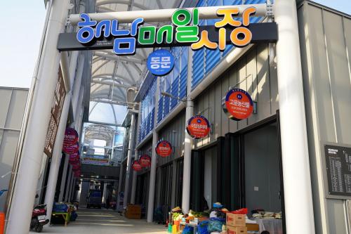 »õ·Ó°Ô ¹®À» ¿¬ ÇØ³²¸ÅÀϽÃÀåÀº 2Ãþ ½ÅÃà °Ç¹°·Î 1Ãþ¿¡´Â 58°³ Á¡Æ÷°¡ ÀÔÁ¡Çϸç, 2Ãþ¿¡´Â û³â¸ô 6°³, ÀϹÝÀ½½ÄÁ¡ 1°³ µîÀÌ À§Ä¡ÇØ ÃÑ 70°³ Á¡Æ÷·Î ÀÌ·ç¾îÁ® ÀÖ´Ù.
