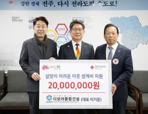 ¿ì¹ü±â ÀüÁÖ½ÃÀåÀº ¡°Àû½ÊÀÚ È¸ºñ´Â ¼Ò¿ÜµÈ ÀÌ¿ôÀ» µ½±â À§ÇÑ ¼ÒÁßÇÑ Àç¿ø¡±À̶ó¸ç ¡°Äڷγª19 Àå±âÈ µîÀ¸·Î ¾î·Á¿î ¿©°Ç ¼Ó¿¡¼µµ ±¸È£ Ȱµ¿¿¡ °¡Àå ¸ÕÀú ¾ÕÀ弸ç Çå½ÅÀûÀ¸·Î ºÀ»çÇÏ´Â ´ëÇÑÀû½ÊÀÚ»çÀÇ ³ë°í¿¡ °¨»çÇÏ´Ù¡±°í ¸»Çß´Ù.