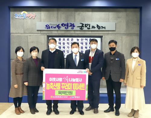 À̳¯ Çà»ç´Â 2023³â °è¹¦³â »õÇØ¿Í ´Ù°¡¿À´Â ¼³ ¸íÀýÀ» ¸ÂÀÌÇÏ¿© ÀÌ¿ô¿¡°Ô µû¶æÇÑ Á¤À» ³ª´©°íÀÚ ½Ç½ÃµÇ¾úÀ¸¸ç ¿ì¸® ³óÃà»ê¹°²Ù·¯¹Ì 100¼¼Æ®(6¹é¸¸ ¿ø »ó´ç)¸¦ ¿µ±¤±º °¢ À¾¸é Ãë¾à°èÃþ¿¡°Ô Àü´ÞµÆ´Ù.