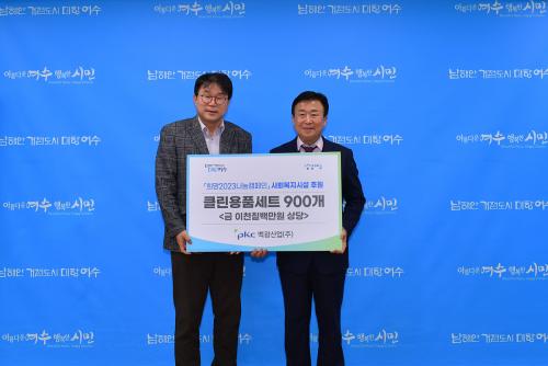 ¿©¼ö½ÃÀå½Ç¿¡¼ ¿¸° Àü´Þ½Ä¿¡´Â Á¤±â¸í ¿©¼ö½ÃÀå°ú ¹é±¤»ê¾÷(ÁÖ)°¼º±¹ °øÀåÀå, À̵¿¿µ »ó¹«°¡ Âü¼®Çß´Ù.