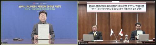 ¿ì¹ü±â ÀüÁÖ½ÃÀåÀº ¡°°¡³ªÀڿͽô ¹®È, ¿ª»çÀûÀ¸·Î ÀüÁÖ½Ã¿Í ºñ½ÁÇÑ ¸éÀÌ ¸¹Àº µµ½Ã·Î µÎ µµ½ÃÀÇ ¹Ì·¡ ¹ßÀüÀ» À§ÇØ Áö¼ÓÀûÀÎ ±³·ù¸¦ À¯ÁöÇÏ±æ ¹Ù¶õ´Ù¡±¸é¼ ¡°Äڷγª ÆÒµ¥¹ÍÀ¸·Î ±×°£ ±³·ù¿¡ Á¦¾àÀÌ ¸¹¾ÒÁö¸¸, À̹ø ¾÷¹«Çù¾àÀ» °è±â·Î °¡³ªÀڿͽÿÍÀÇ ±³·ù ºÐ¾ß¸¦ ´õ¿í È®´ëÇÏ°í µÎ µµ½Ã °£ Çù·ÂÀ» °ø°íÈ÷ ÇÒ °Í¡±À̶ó°í ¸»Çß´Ù.