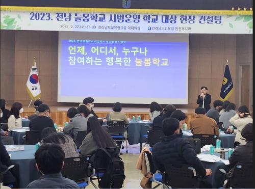 À̳¯ ÄÁ¼³ÆÃÀº ±³À°ºÎ, ½Ã¹ü¿î¿µ Çб³ ¹× ÇØ´ç ±³À°Áö¿øÃ» °ü°èÀÚ µî 80¿©¸íÀÌ Âü¼®ÇÑ °¡¿îµ¥ Àü³² ´Ãº½Çб³ ¼¼ºÎ ÃßÁø°èȹ ¾È³», ´Ãº½Çб³ ¿î¿µÀ» À§ÇÑ Áö¿ªº° ÇùÀÇȸ ¹× ÁúÀÇÀÀ´ä ¼ø¼·Î ÁøÇàµÆ´Ù.