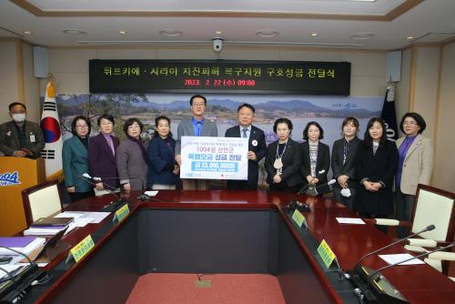 À̳¯ Àü´ÞÇÑ ¼º±ÝÀº ±º Áö¿ø±Ý 1,300¸¸¿ø°ú ±º ¼Ò¼Ó °øÁ÷ÀÚµéÀÇ ¸ð±Ý¾× 1,000¸¸¿øÀ» ´õÇÑ 2,300¸¸¿øÀ¸·Î ÁöÁø ÇÇÇØ Áö¿ª ÀÌÀç¹Î ±¸È£¿Í º¹±¸È°µ¿ Áö¿ø¿¡ »ç¿ëµÉ ¿¹Á¤ÀÌ´Ù.