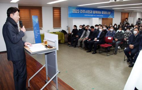 ¿ì¹ü±â ½ÃÀåÀº 27ÀÏ ¡®2023³â ½Ã¹Î°ú ÇÔ²²ÇÏ´Â µ¿ ¼ø¹æ¡¯ ÀÏÁ¤À¸·Î ÀüÁÖ»óÁø½ÅÇù(ÀÌ»çÀå ±èµ¿¼®)À» ã¾Æ Áß¾Óµ¿ Áֹεé°ú ´ëȸ¦ ³ª´©´Â ½Ã°£À» °¡Á³´Ù.