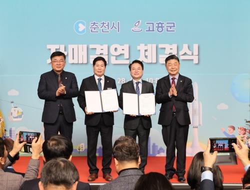 À°µ¿ÇÑ Ãáõ½ÃÀåÀº ȯ¿µ»ç¿¡¼ ¡°Ã»Á¤ÀÚ¿¬°ú ÷´Ü»ê¾÷ÀÌ Á¶È¸¦ ÀÌ·ç°í ÀÖ´Â °íÈﱺ°úÀÇ ÀڸŰῬÀ» ¸Å¿ì ¶æ±í°Ô »ý°¢Çϸç, µÎ Áö¿ªÀÌ ¼·Î ±ä¹ÐÇÏ°í ³»½Ç ÀÖ´Â Çù·Â °ü°è°¡ µÇµµ·Ï ÇÔ²² ³ë·ÂÇÏÀÚ¡±°í ¸»Çß´Ù.