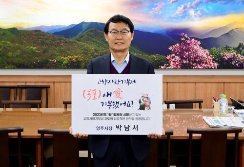 ¹Ú³²¼ ¿µÁÖ½ÃÀåÀº ¡°°íÇâ»ç¶û±âºÎ Ȱ¼ºÈ¿Í ÀڸŰῬµµ½ÃÀÇ ¹ßÀüÀ» ÀÀ¿øÇϱâ À§ÇØ ±âºÎÇÏ°Ô µÆ´Ù¡±¸ç ¡°Àڸŵµ½Ã ¸ñÆ÷ÀÇ ¼º°øÀûÀÎ °íÇâ»ç¶û±âºÎÁ¦ ¾ÈÂøÀ» ±â¿øÇÑ´Ù¡±°í ÀüÇß´Ù.