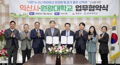½Ã´Â 3ÀÏ Á¤ÇåÀ² ÀÍ»ê½ÃÀå°ú ¹Ú¼ºÅ ¿ø±¤´ëÇб³ ÃÑÀåÀÌ Âü¼®ÇÑ °¡¿îµ¥ ÀÚ¿¬½Ä¹°¿ø(Çб³¼ö¸ñ¿ø), ¿ø´ëº´¿ø, Ä·ÆÛ½º¸¦ ÀÕ´Â ½Ã¹Î ´©±¸³ª Æí¾ÈÇÏ°í ¾ÈÀüÇÏ°Ô °È±â ÁÁÀº »êÃ¥·Î Á¶¼ºÀ» À§ÇÑ Çù¾àÀ» ü°áÇß´Ù.