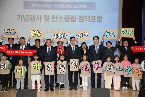 ÇÑÆí, À̳¯ 2050 Àü¶ó³²µµ ź¼ÒÁ߸³ ºñÀü ¼±Æ÷ 2Áֳ⠱â³äÇà»ç´Â ¼µ¿¿í ÀÇÀåÀ» ºñ·ÔÇØ ź¼ÒÁ߸³³ì»ö¼ºÀåÀ§¿ø, ȯ°æ´Üü, Àü¹®°¡ µîÀÌ Âü¼®ÇÑ °¡¿îµ¥ ±â³ä»ç¿Í Ãà»ç, ź¼ÒÁ߸³À§¿ø À§ÃËÀå ¼ö¿© µîÀÇ ¼ø¼·Î Àü°³µÆ´Ù.