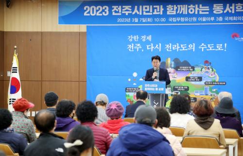 ¿ì¹ü±â ½ÃÀåÀº 7ÀÏ ¿ÀÀü°ú ¿ÀÈÄ °¢°¢ ÀüÁÖ µ¿³²ºÎ Áö¿ªÀÇ °ü¹®ÀÎ µ¿¼Çе¿°ú ¼¼Çе¿À» Â÷·Ê·Î ¹æ¹®ÇØ ½Ã¹Îµé¿¡°Ô ½ÃÁ¤ ¹ßÀü¿¡ ´ëÇÑ ºñÀüÀ» ¼³¸íÇϰí ÀüÁÖ ¹ßÀüÀ» À§ÇØ ÇÔ²² °í¹ÎÇÏ´Â ¡®½Ã¹Î°ú ÇÔ²²ÇÏ´Â µ¿ ¼ø¹æ¡¯ ÀÏÁ¤À» ¼ÒÈÇß´Ù.