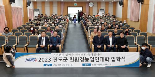 ÇÑÆí À̳¯ ÀÔÇнÄÀº ±èÈñ¼ö Áøµµ±º¼ö, ±èÀÎÁ¤ Àü¶ó³²µµÀÇ¿ø, ÁÖ¸í±Ô ³óÇùÀºÇà Áøµµ±ºÁöºÎ ÁöºÎÀåÀ» ºñ·ÔÇØ ±³À°»ý°ú °ü°èÀÚ µî 100¸íÀÌ Âü¼®ÇÑ °¡¿îµ¥ ÁøÇàµÆ´Ù.