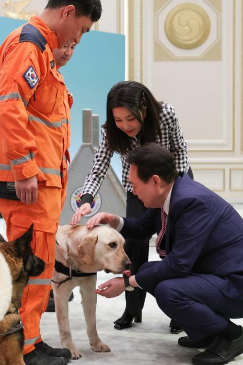 À±¼®¿ ´ëÅë·É°ú ºÎÀÎ ±è°ÇÈñ ¿©»ç°¡ 7ÀÏ Ã»¿Í´ë ¿µºó°ü¿¡¼ ¿¸° Æ¢¸£Å°¿¹ ÁöÁø ´ëÀÀ ´ëÇѹα¹ ÇØ¿Ü±ä±Þ±¸È£´ë(KDRT) °Ý·Á Çà»ç¿¡¼ 119 ±¸Á¶°ßÀ» ¾²´Ùµë°í ÀÖ´Ù.