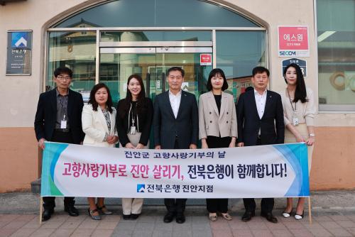 ÀüºÏÀºÇà Áø¾ÈÁöÁ¡¿¡¼ Ä¡·ç¾îÁø À̹ø Àü´Þ½Ä¿¡´Â ÀüºÏÀºÇà ±è¿µ¹Î ºÎÇàÀåÀÌ Âü¼®ÇÏ¿© ÀÚ¸®¸¦ ºû³ÂÀ¸¸ç, Áø¾È±ºÀÇ Áö¿ª°æÁ¦¸¦ Ȱ¼ºÈÇÏ°í ¼Ò¸êÀ§±âÀÇ Áø¾ÈÀ» »ì¸®´Âµ¥ ÈûÀ» º¸Å±â À§ÇØ ÀÚ¹ßÀûÀ¸·Î ¸ð±ÝÇÑ ±âºÎ±ÝÀ» Àü´ÞÇß´Ù.