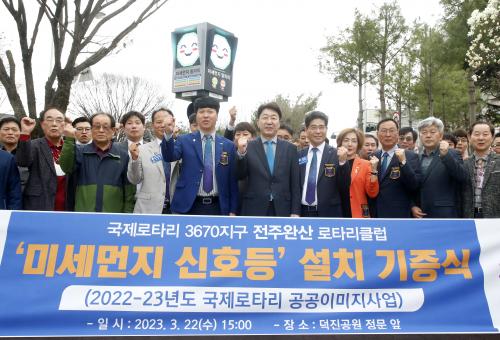 ÀüÁÖ ¿Ï»ê·ÎŸ¸®Å¬·´(ȸÀå °½Å¼®)Àº 22ÀÏ Ã¢¸³ 40Áֳ⠱â³äÇØ ÀüÁÖ ¹ßÀü°ú ½Ã¹ÎµéÀÇ °Ç° º¸È£¸¦ À§ÇÑ ¹Ì¼¼¸ÕÁö½ÅÈ£µî 1±â¸¦ ´öÁø°ø¿ø °ü¸®»ç¹«¼Ò ¾Õ¿¡ ¼³Ä¡Çϰí À̸¦ ÀüÁֽÿ¡ ±âÁõÇß´Ù.