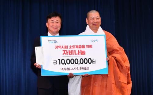 À̳¯ ¿©¼öºÒ±³»ç¾Ï¿¬ÇÕȸ´Â ȸÀå ÃëÀÓ¹ýȸ¸¦ ±â³äÇØ Áö¿ª»çȸ ¼Ò¿Ü°èÃþÀ» À§ÇÑ ÀÚºñ³ª´® 1000¸¸ ¿øÀ» ¿©¼ö½Ã¿¡ Àü´ÞÇß´Ù.