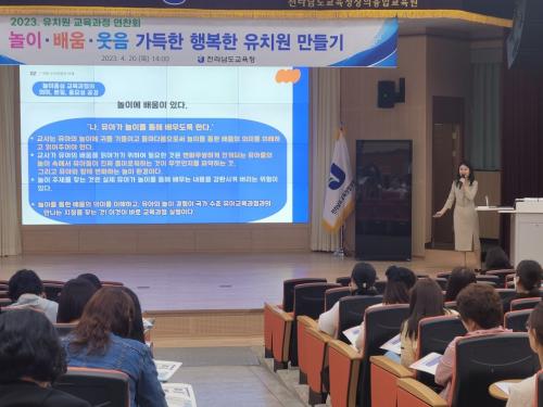 ³ë¸í¼÷ À¯ÃʵÀ°°úÀåÀº ¡°À̹ø ¿¬Âùȸ°¡ À¯Ä¡¿ø ±³À°°úÁ¤¿¡ ´ëÇÑ ÀÌÇØ¸¦ ³ôÀÌ°í ¼ö¾÷¿¡ ´ëÇÑ Àü¹®¼ºÀ» °ÈÇÏ´Â ÀÚ¸®À̱⸦ ¹Ù¶ó¸ç Àü³²±³À°ÀÇ Ã¹ Ãâ¹ßÁ¡ÀÎ À¯Ä¡¿ø¿¡¼ºÎÅÍ ³îÀÌ¡¤¹è¿ò¡¤¿ôÀ½ÀÌ °¡µæÇÑ ÇູÇÑ À¯Ä¡¿øÀÌ µÇµµ·Ï ¸ðµÎ ÇÔ²² ÁöÇý¿Í ÈûÀ» ¸ð¾Æ Áֽöó.¡±°í ´çºÎÇß´Ù.