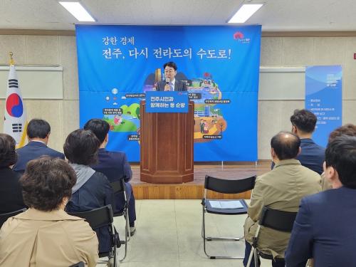 ÀÌ ÀÚ¸®¿¡¼ ¿ì ½ÃÀåÀº 2°³ µ¿ Áֹε鿡°Ô ¹Î¼± 8±â ½ÃÁ¤¸ñÇ¥ÀÎ ¡®°ÇÑ °æÁ¦ ÀüÁÖ, ´Ù½Ã Àü¶óµµÀÇ ¼öµµ·Î!¡¯¿Í ÀüÁÖÀÇ ´ëº¯ÇõÀ» ¾Õ´ç±â±â À§ÇÑ ÀüÁÖ½ÃÀÇ ºñÀü°ú öÇÐÀ» ½Ã¹Îµé°ú °øÀ¯Çß´Ù.