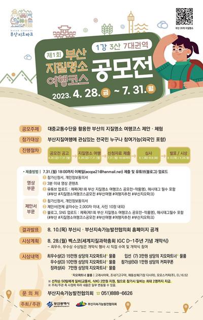 À̹ø °ø¸ðÀüÀº ºÎ»êÁöÁú¸í¼Ò¿¡ °ü½É ÀÖ´Â ´©±¸³ª Âü¿©ÇÒ ¼ö ÀÖ´Ù. °³ÀÎ ¶Ç´Â ¿øÆÀÀ» ±¸¼ºÇØ ºÎ»ê±¹°¡ÁöÁú°ø¿øÀ» Æ÷ÇÔÇÑ ºÎ»êÀÇ ¿ì¼öÇÑ ÁöÁú¸í¼ÒÀÎ 1°¡¤3»ê¡¤7´ë ±Ç¿ª 20°³ ¸í¼Ò*¸¦ ´ë»óÀ¸·Î ´ëÁß±³Åë¼ö´Ü**À» Ȱ¿ëÇÑ ¡®ÁöÁú¸í¼Ò ¿©ÇàÄÚ½º¡¯ Á¦¾È¼ ¶Ç´Â ¿µ»óÀ» ¸¸µé¾î Á¦ÃâÇÏ¸é µÈ´Ù.