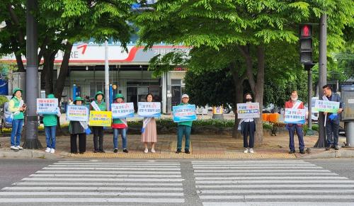 Çϴ絿 »õ¸¶À»ºÎ³àȸ¿Í ÇùÀÇȸ¸¦ ºñ·ÔÇØ ¹Ù¸£°Ô»ì±âÀ§¿øÈ¸ ȸ¿øµé°ú, Á÷¿ø, ½ÃÀÇ¿ø µî 20¸íÀÌ µ¿ÂüÇÑ °¡¿îµ¥ ¹°Àý¾à ¾î±ú¶ì¿Í ÇÇÄÏÀ» µé°í ÇÏ´ç ±¤ÀåÁÖÀ¯¼Ò ¾Õ¿¡¼ ÀÏ»ó »ýȰ ¼Ó ¹° Àý¾à ½ÇõÀ» È£¼ÒÇß´Ù.