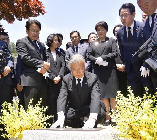 ÇÑÆí, 5‧18¹ÎÁÖȿÀ» ¾ÕµÎ°í ±èµ¿¿¬ °æ±âµµÁö»ç, ±è°ü¿µ ÀüºÏµµÁö»ç, À¯½Â¹Î Àü ±¹È¸ÀÇ¿ø µî ÁÖ¿ä ÀλçµéÀÌ ÀÕµû¶ó ±¤ÁÖ¸¦ ¹æ¹®, ¿À¿ù¿µ·ÉµéÀÇ ³ÌÀ» À§·ÎÇϸç 5‧18Á¤½Å °è½ÂÀ» ´ÙÁüÇß´Ù.