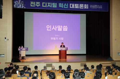 ÀüÁÖ½Ã¿Í ÀüÁÖÁ¤º¸¹®È»ê¾÷ÁøÈï¿øÀº 22ÀÏ Çѱ¹ÀüÅë¹®ÈÀü´ç¿¡¼ ¿ì¹ü±â ÀüÁÖ½ÃÀå°ú ÀåµÎ¿ø °úÇбâ¼úÁ¤º¸Åë½ÅºÎ ¼ÒÇÁÆ®¿þ¾î»ê¾÷°úÀå, ÀÌ¿µ·Î ÀüÁÖÁ¤º¸¹®È»ê¾÷ÁøÈï¿øÀå µî °ü°èÀÚ 200¿© ¸íÀÌ Âü¼®ÇÑ °¡¿îµ¥ ¡®ÀüÁÖ µðÁöÅÐÇõ½Å ´ëÅä·Ðȸ¡¯¸¦ °³ÃÖÇß´Ù.