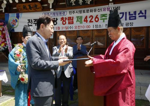 ÀÌ¿¡ ¿ì¹ü±â ÀüÁÖ½ÃÀåÀº À̳¯ Çà»ç¿¡¼ ±â·É´ç¿¡ ÀüÁֽà ÇâÅä¹®ÈÀ¯»ê ÁöÁ¤¼¸¦ Àü´ÞÇϱ⵵ Çß´Ù.