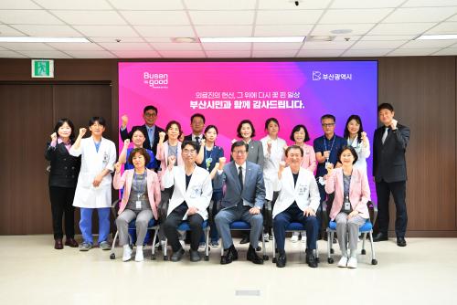 ¹ÚÇüÁØ ½ÃÀåÀº À̳¯ ºÎ»êÀÇ·á¿øÀ» ã¾Æ Áö³ 3³â 4°³¿ù°£ÀÇ ´ëÀÀ ÇöȲ°ú ¾Ö·Î»çÇ×À» µè°í, ºÎ»êÀÇ·á¿ø ÀÇ·áÁøµéÀ» ºñ·ÔÇÑ ºÎ»êÀÇ ¸ðµç ÀÇ·áÁø¿¡ ºÎ»ê½Ã¹ÎÀ» ´ëÇ¥ÇØ Áø½É ¾î¸° °¨»ç Àλ縦 ÀüÇϸç, ÀÌ Àǹ̸¦ ´ãÀº ±â³äǰ°ú ²É´Ù¹ßÀ» Àü´ÞÇÒ ¿¹Á¤ÀÌ´Ù.