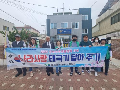 Áö³ 5ÀÏ À̸¥ ¾ÆÄ§ºÎÅÍ È¸¿øµéÀº ºÏÇ×»ç°Å¸®~Á×±³µ¿ »ï°Å¸® ¾à 500m ±¸°£ »ó°¡¿Í ÁÖÅÿ¡ ±¹±â 100¿©°³¸¦ °Ô¾çÇß´Ù.