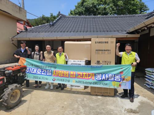 ÀÌÆ² µ¿¾È ¢ß´ëÈ£°Ç¼³ ÀÓÁ÷¿ø ¹× Çù·Â¾÷ü Á÷¿ø°ú ³óÇù Áøµµ±ºÁöºÎ Á÷¿ø 20¿©¸íÀº ±º³»¸éÀÇ °Åµ¿ÀÌ ºÒÆíÇÑ ³ó°¡ÀÇ ÁýÀ» ã¾Æ µµ¹è, ÀåÆÇ, ³»¿ÜºÎ ¼ö¸® µîÀ» ½Ç½ÃÇÏ¿´À¸¸ç, ³óÇù Áøµµ±ºÁöºÎ´Â ¿À·¡µÇ¾î »ç¿ëÀÌ ¾î·Á¿î ¼¼Å¹±â¡¤TV¡¤³ÃÀå°í µî ÀüÀÚÁ¦Ç° ÀϺθ¦ ±³Ã¼ÇÏ¿´´Ù.