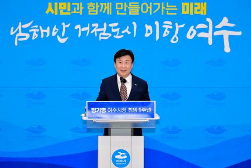 ½Ã¿¡ µû¸£¸é, Á¤±â¸í ¿©¼ö½ÃÀåÀº 29ÀÏ ½Ãû ȸÀǽǿ¡¼ ¹Î¼±8±â ÃëÀÓ 1ÁÖ³â Áֿ伺°ú¿Í ÇâÈÄ ½ÃÁ¤¿î¿µ ¹æÇâÀ» ¼³¸íÇÏ´Â ±âÀÚȸ°ßÀ» °¡Á³´Ù.