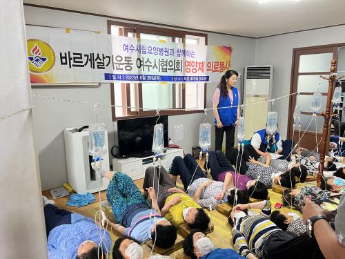 ÇÑÆí ¹Ù¸£°Ô»ì±â¿îµ¿ ¿©¼ö½ÃÇùÀÇȸ´Â ¼øÈ¯ ÀÇ·áºÀ»ç»Ó¸¸ ¾Æ´Ï¶ó ¹Ø¹ÝÂù°ú »ýÇÊǰ µî ¾î·Á¿î ÀÌ¿ôµé¿¡°Ô ²À ÇÊ¿äÇÑ ¹°Ç°À» ÈÄ¿øÇÏ¸ç ³ª´® ¹®È È®»ê¿¡ ¾ÕÀå¼°í ÀÖ´Ù.