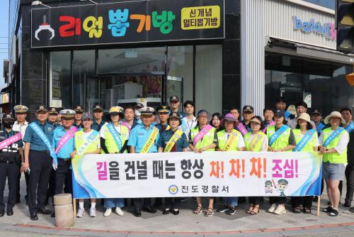 À̳¯, Áøµµ°æÂû°ú ³ì»ö¾î¸Ó´Ïȸ¡¤¸ð¹ü¿îÀüÀÚȸ µî 40¿©¸íÀÌ Âü¼® Ãâ±Ù±æ Â÷·®°ú º¸ÇàÀÚµéÀ» ´ë»óÀ¸·Î ±ÔÁ¤¼Óµµ Áö۱â, ½ÅÈ£Áؼö, ¾ÈÀü¶ìÂø¿ë, ÁÖÁ¤Â÷À§¹Ý, ¹«´ÜȾ´Ü ±ÝÁö µî ¾ÈÀü ¼öÄ¢À» ÁßÁ¡ÀûÀ¸·Î È«º¸ ÇÏ¿´´Ù.