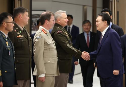 À± ´ëÅë·ÉÀº À̳¯ ¿ÀÈÄ ¿ë»ê ´ëÅë·É½Ç û»ç¿¡¼ ¿¸° À¯¿£»ç ÁÖ¿ä Á÷À§ÀÚµé°úÀÇ °£´ãȸ¿¡¼ ¡°ºÏÇÑÀº Áö±Ýµµ À¯¿£»ç¸¦ Çѹݵµ ÀûÈ ÅëÀÏÀÇ ÃÖ´ë °É¸²µ¹·Î ¿©±â°í ÀÖ´Ù¡±¸ç À̰°ÀÌ ¸»Çß´Ù. À̳¯ °£´ãȸ¿¡´Â Æú ·¯Ä³¸Ó¶ó »ç·É°ü°ú ¾Øµå·ç ÇØ¸®½¼ ºÎ»ç·É°ü µîÀÌ Âü¼®Çß´Ù.