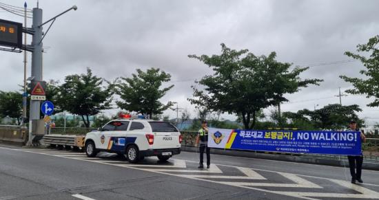 ±× ù ¹øÂ°·Î ¸ñÆ÷´ë±³ ÁøÀԷο¡ ¡°¸ñÆ÷´ë±³ º¸Çà±ÝÁö, NO WALKING¡± ¹®±¸°¡