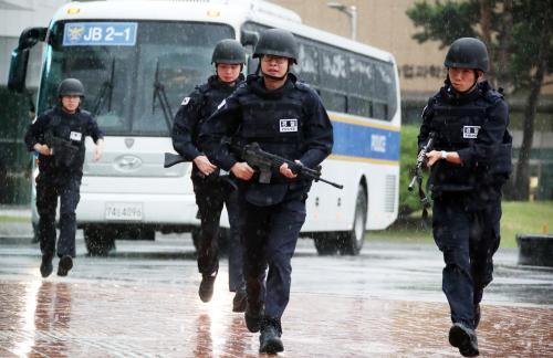 À̹ø ÈÆ·ÃÀº ÀüÁÖÁö¿ª ±¹°¡ Áß¿ä½Ã¼³¿¡¼ Å×·¯ ¹ß»ý½Ã ¹Î¡¤°ü¡¤±º¡¤°æ ¹× ¼Ò¹æÀÇ ÇÕµ¿ ´ëÀÀ ´É·ÂÀ» ³ô¿© ÅëÇÕ¹æÀ§Å¼¼¸¦ °ÈÇϱâ À§ÇÑ °ÍÀ¸·Î, ¹Ì»óÀÇ ºñÇ๰ü 2´ë°¡ ±¹°¡Áß¿ä½Ã¼³À» Å×·¯ÇÑ »óȲÀ» °¡Á¤ÇØ ¹Î¡¤°ü¡¤±º¡¤°æ¡¤¼Ò¹æ µî À¯°ü±â°üÀÌ ÇÕµ¿À¸·Î »ç»óÀÚ ±¸Á¶ ¹× ÈÀçÁø¾Ð, Å×·¯¹ü »ýÆ÷ ¹× ÀÀ±Þº¹±¸ µîÀÇ ÀÓ¹«¸¦ ¼öÇàÇÏ´Â ¹æ½ÄÀ¸·Î ½ÇÁ¦ ´ëÀÀ ÈÆ·ÃÀ¸·Î ÀÌ·ïÁ³´Ù.