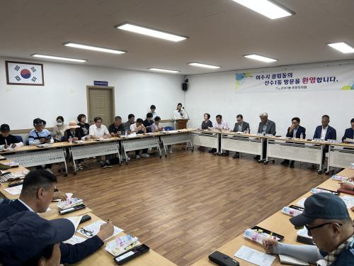 »ê¼ö1µ¿ ÁÖ¹ÎÀÚġȸ´Â À̳¯ °øÀ¯È¸¸¦ ÅëÇØ ÁÖ¹ÎÀÚġȸ Àüȯ»ç·Ê °æÇè ¹× ³ëÇϿ츦 °øÀ¯Çϰí, ÁֹΠÀÚÄ¡ ¿ª·® °È¿Í Áö¿ª°øµ¿Ã¼ »ó»ý ¹ßÀüÀ» À§ÇÑ ±³·ùÀÇ ½Ã°£À» °¡Á³´Ù.