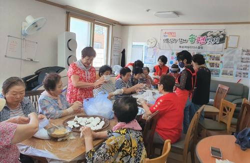 À̸¥ ¾ÆÄ§ºÎÅÍ ¶± ¹ÝÁ×°ú Âò±â µî ¼ÛÆí ºú±â¿¡ ÇÊ¿äÇÑ Àç·á¸¦ ¿©¼øÀÓ È¸ÀåÀ» ºñ·ÔÇÑ È¸¿ø 15¸íÀÌ Á÷Á¢ ÁغñÇßÀ¸¸ç, °æ·Î´ç ¾î¸£½Å 35¸í µî ÃÑ 50¿©¸íÀÌ °æ·Î´ç¿¡ ¸ð¿© dz¼ºÇÑ ÇѰ¡À§¸¦ ±â¿øÇÏ¸é¼ ¼ÛÆíÀ» ºú¾ú´Ù.
