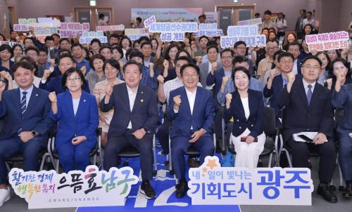 °±âÁ¤ ±¤ÁÖ½ÃÀåÀº ¡°½ÃÁ¤ ¸ñÇ¥´Â ¿ª»ç¸¦ Çõ¸íÇß´ø ±¤ÁÖ¿¡¼ ´©±¸³ª ±âȸ¸¦ ´©¸®¸ç ¡®³» »î¡¯À» Çõ¸íÇÏ´Â ±¤ÁÖ·Î ³ª¾Æ°¡´Â °Í¡±À̶ó¸ç ¡°Á¤Ã¥¿¡ ¹Î½ÉÀÇ ¿ÊÀ» ÀÔÈ÷´Â °Í¸¸Å Áß¿äÇÑ ÀÏÀº ¾ø´Â ¸¸Å ¾ÕÀ¸·Îµµ ÀÚÄ¡±¸ ¼ÒÅëÀÇ ³¯À» ÅëÇØ ÁÖ¹ÎÀÇ »ý»ýÇÑ ¸ñ¼Ò¸®¸¦ µè°Ú´Ù¡±°í ¸»Çß´Ù.
