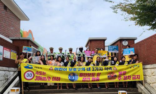 Âü¿©ÀÚµéÀº ±³Åë¾ÈÀü Çö¼ö¸·°ú ÇÇÄÏ, ¾î±ú¶ì, È«º¸¹°(¿»·ÎÄ«µå) µîÀ» Ȱ¿ëÇØ ¢º¾î¸°ÀÌ º¸È£±¸¿ª ¾ÈÀü¼Óµµ 30km/h Áؼö ¢º5´ë ºÒ¹ý ÁÖ¡¤Á¤Â÷ ±ÙÀý µî °³Çб⠾ÀÌ ±³Åë¾ÈÀü¿¡ ´ëÇÑ °æ°¢½É°ú ¼±Áø ±³Åë¹®È Á¤ÂøÀ» À§ÇÑ È«º¸È°µ¿À» ÆîÃÆ´Ù.