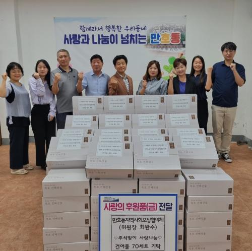 À̹ø ³ª´®Àº ¸¸È£µ¿ Áö¿ªÆ¯È»ç¾÷ÀÎ ¡®³ª´®ÀÇ Áý¡¯ ÈÄ¿ø±ÝÀ¸·Î ÁøÇàµÆÀ¸¸ç, °Ç¾î¹° 70¼¼Æ®(½Ë°¡ 140¸¸¿ø »ó´ç)¸¦ ±¸ÀÔÇØ Àú¼Òµæ °¡Á¤¿¡ Áö¿øÇß´Ù. ÀÌ ³¯ ±âŹµÈ ¹°Ç°Àº Áö¿ª»çȸº¸ÀåÇùÀÇü À§¿øµéÀÌ Á÷Á¢ ´ë»ó°¡±¸¸¦ ¹æ¹®ÇØ ¾ÈºÎ¸¦ »ìÇǸç Àü´ÞÇÑ´Ù.